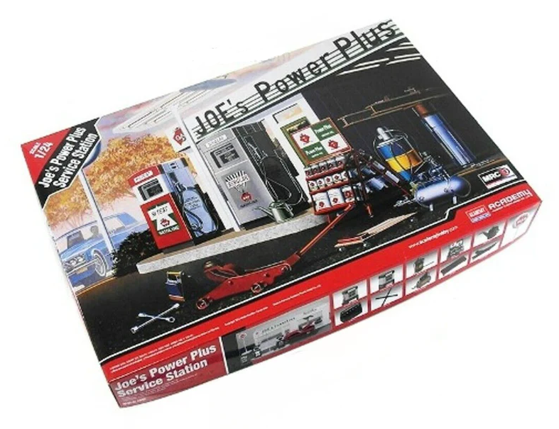 This tried and true Academy service station, Joe's Power Plus is once again ready to provide full service for your 1:24 Scale cars & trucks with its full complement of superbly detailed garage items.