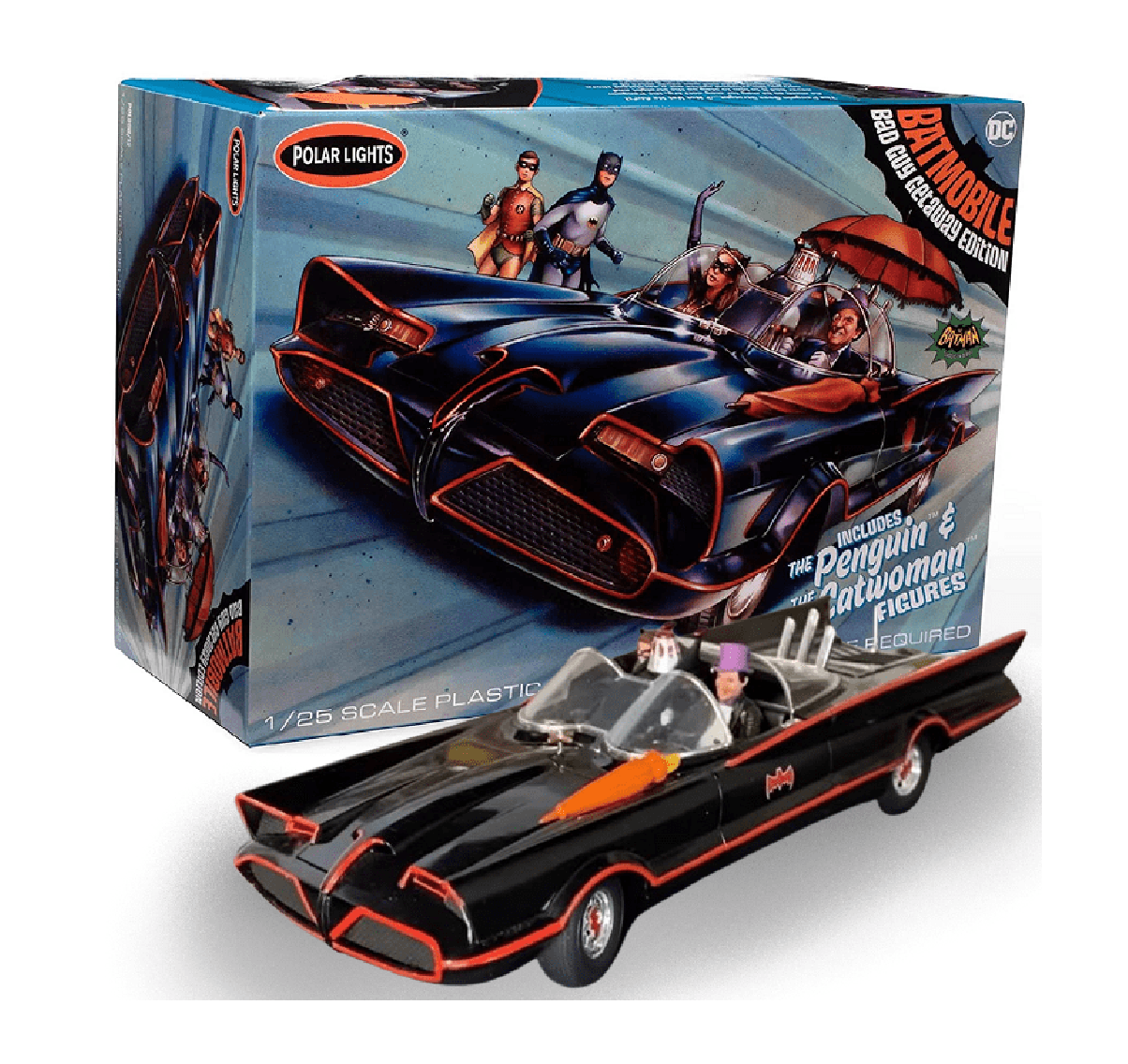 New additions: All-new PVC figures of Penguin and Catwoman are included to represent the times they stole Batman’s ride in the TV show. (Figures require paint and glue)