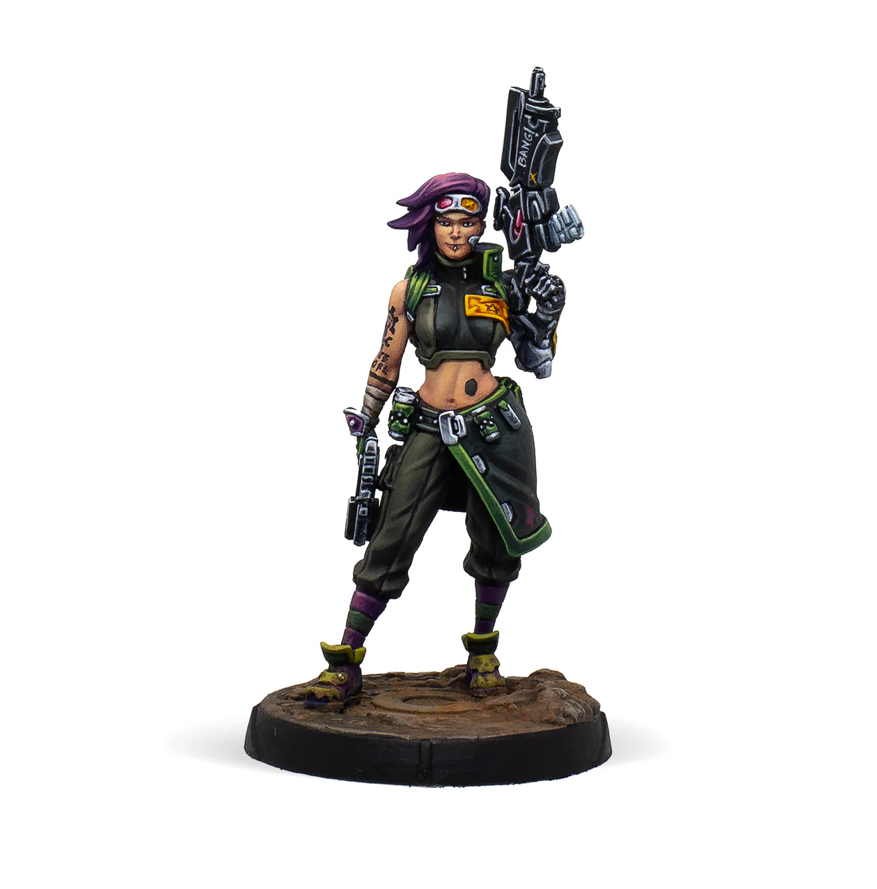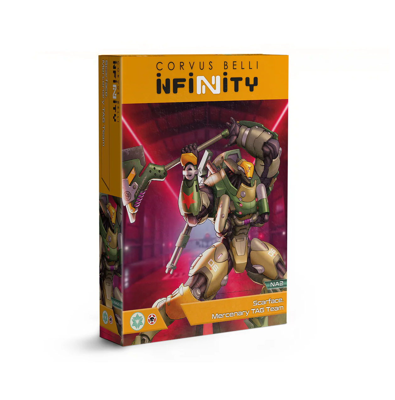 This box includes two plastic resin miniatures of NA2: one Scarface armed with an AP Spitfire and Panzerfaust, and one Cordelia Engineer. It's been a while since the first version of this team was shown at GenCon, but the wait for a re-sculpt is over and you can now get this new box. You have seen them as a pre-release at GenCon, now you can get the box of these mercenary siblings: a TAG and an Engineer for hire. An unbeatable combo!