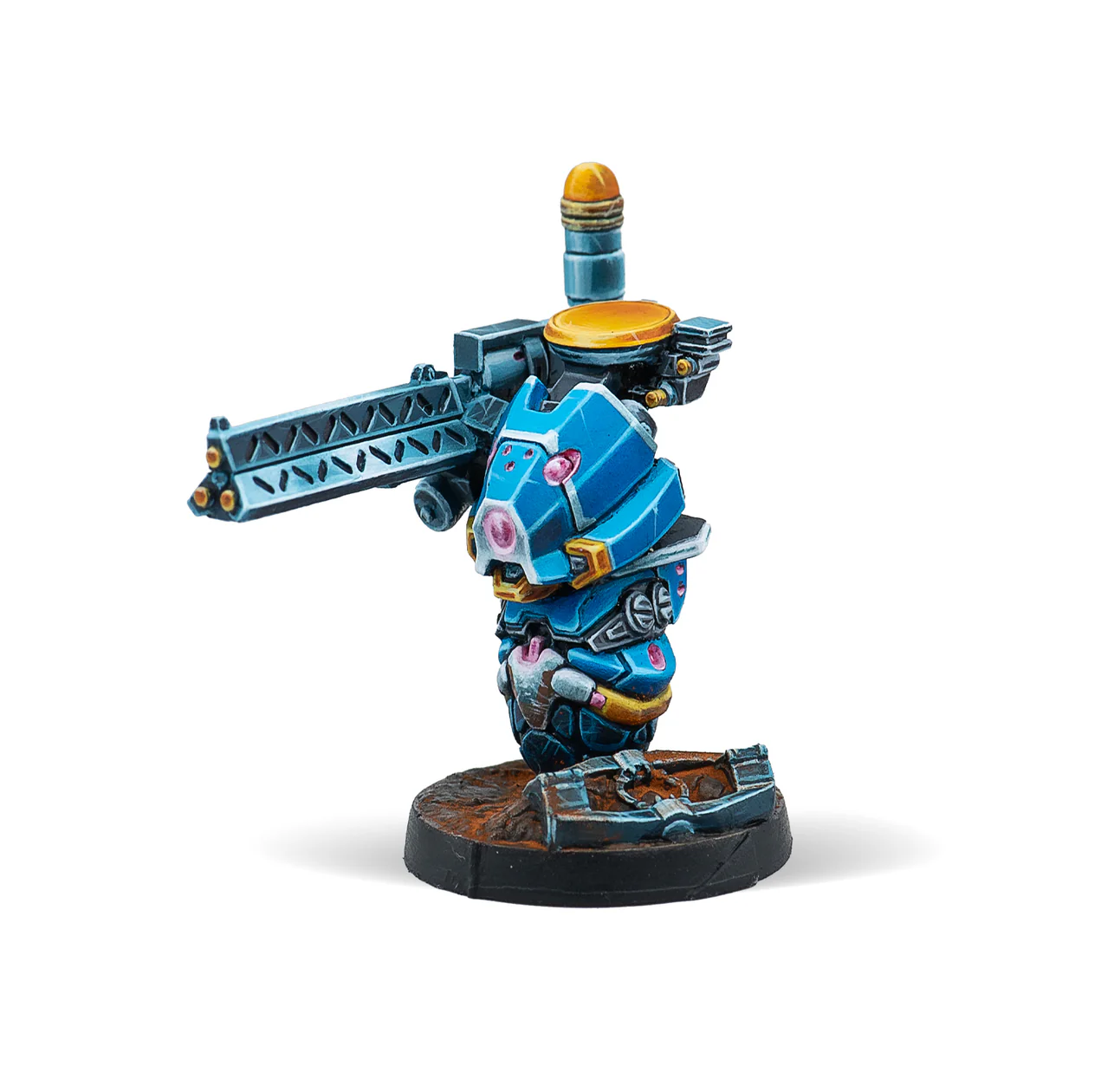 Troopers from the Mobile Support Section rely on Remotes to function as artillery ambulatory weapons. Their auxiliary Remotes were made into highly mobile, lightweight artillery platforms, and thanks to their smaller size and compact design, they were perfect for the narrow spaces of urban, mountain, and jungle fighting.