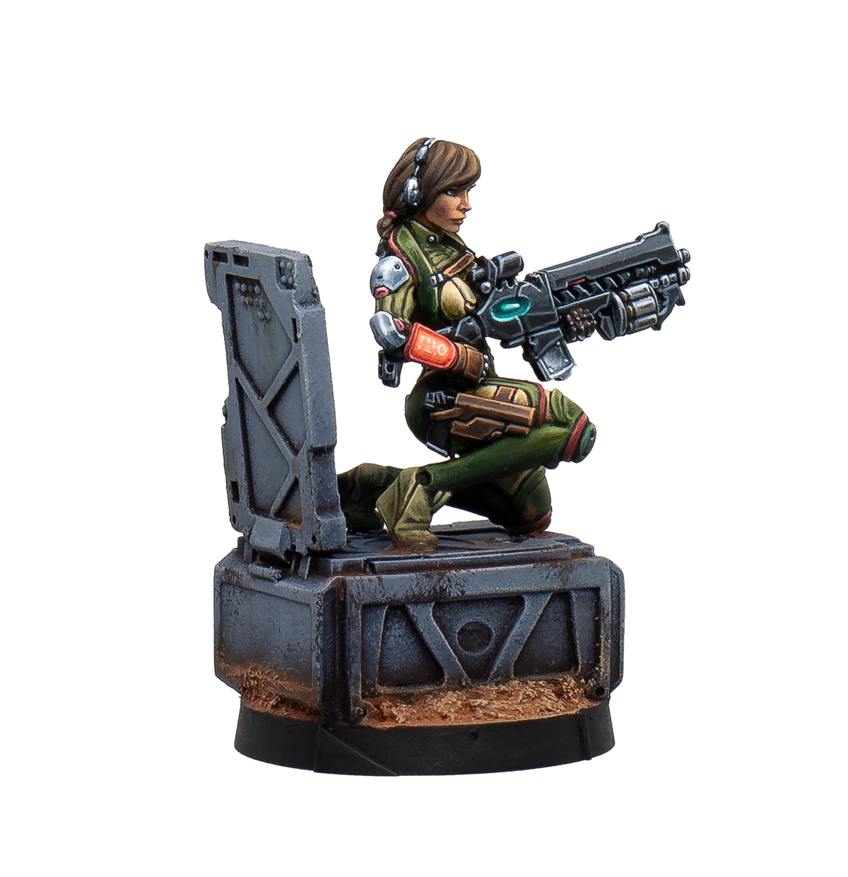 This box includes two miniatures: One plastic resin miniature of an Anaconda and one metal miniature of an Anaconda Operator. This impressive miniature will not only look great on your gaming table, but also on your army list. Thanks to its Escape System, the Anaconda becomes a resilient TAG and a real pain for the enemy.