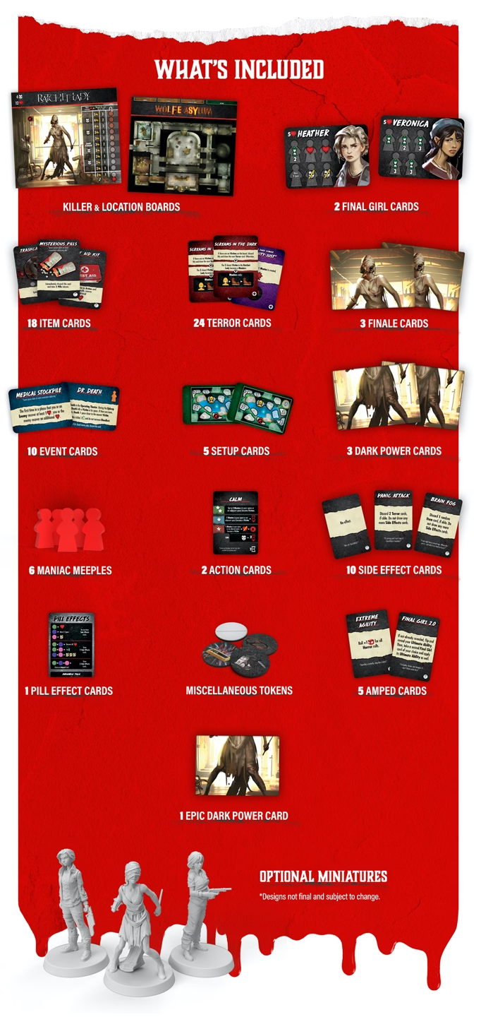Playing on a famous horror movie trope, Final Girl is a solitaire-only game that puts the player in the shoes of a female protagonist who must kill the slasher if she wants to survive.
