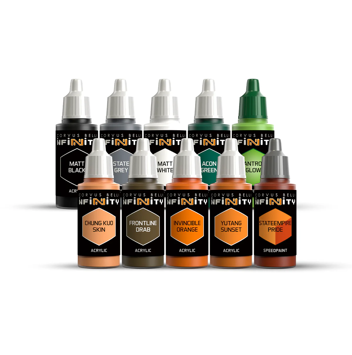 Enjoy painting your Infinity miniatures! In this paint set you'll discover all the essential paints for your Nomads Army, along with a step by step tutorial that will guide you into the thrilling world of miniature painting.