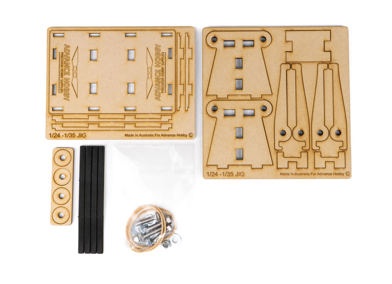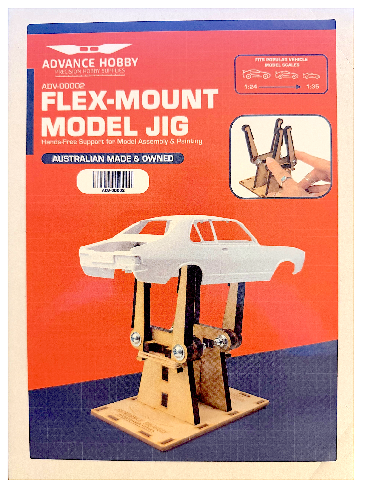 The Advance Hobby Flex-Mount is an Australian-designed, laser cut MDF model assembly jig for scale model cars and tanks and is best suited to vehicles between 1:24 scale to 1:35 scale.