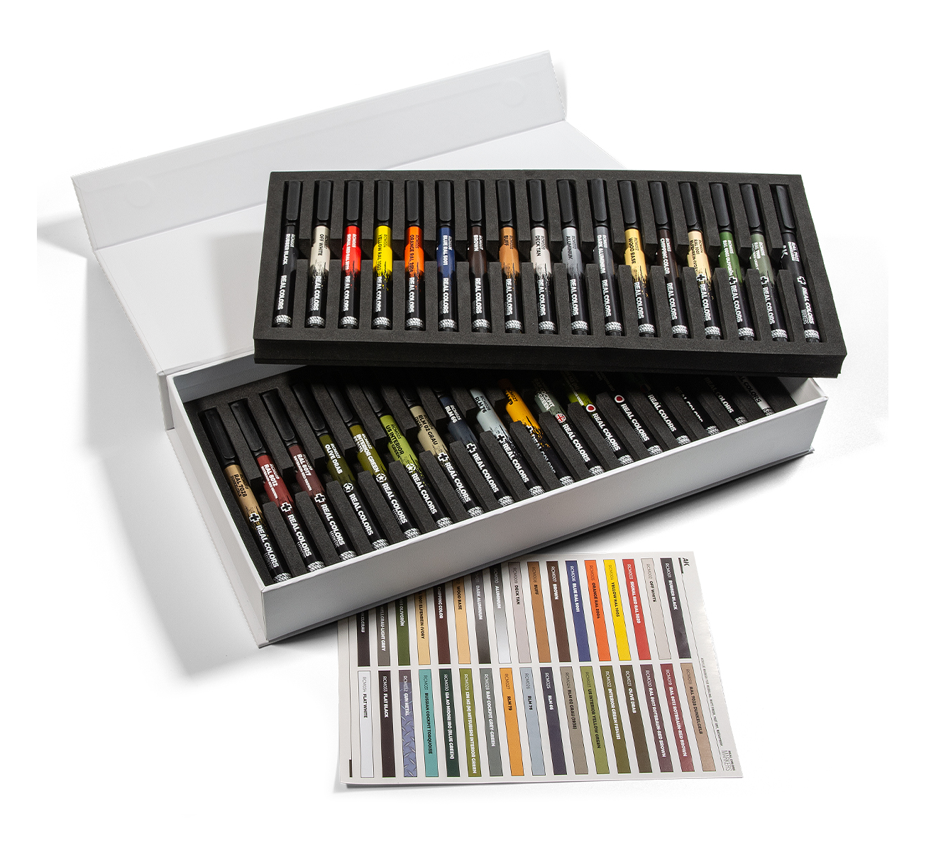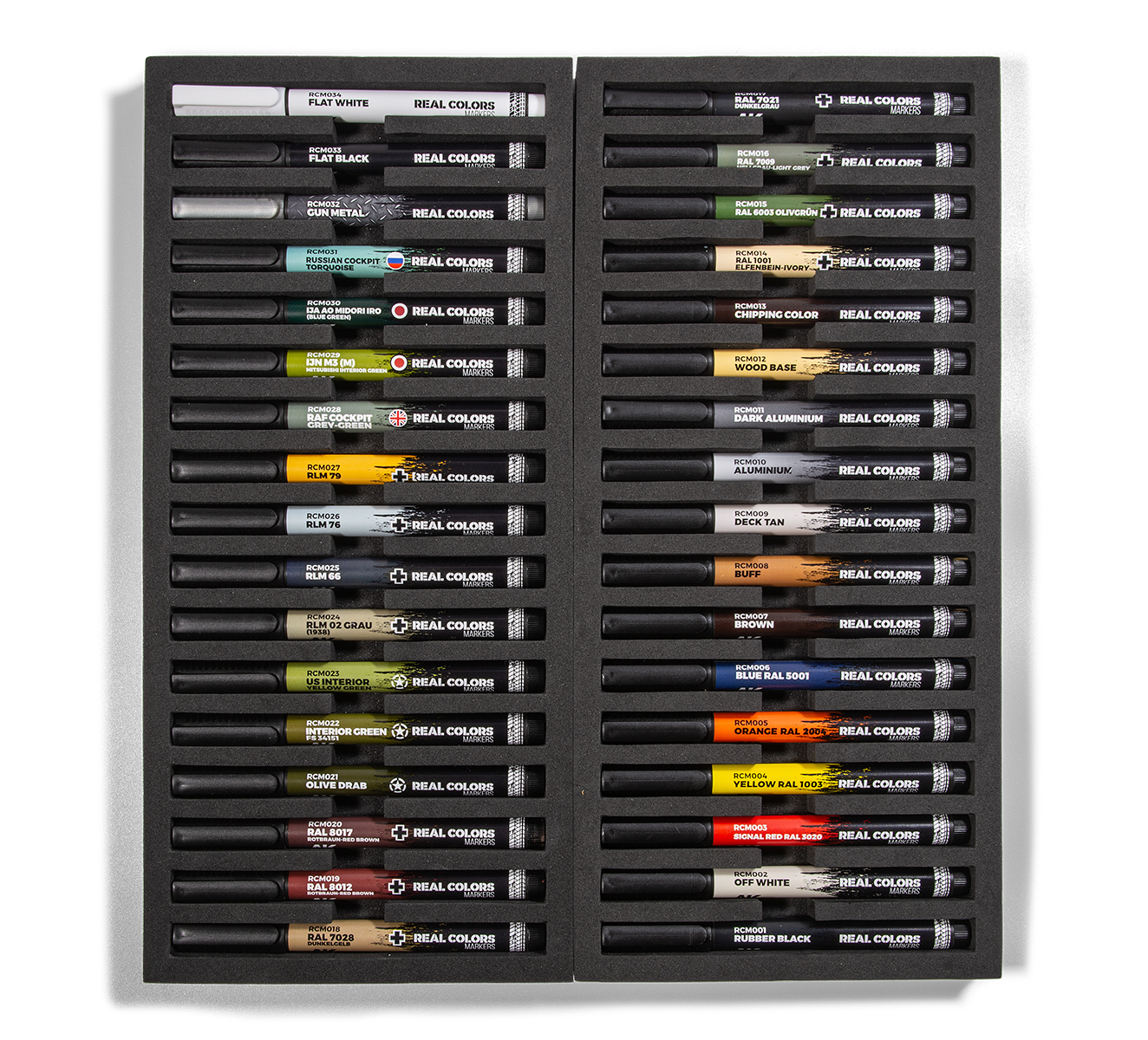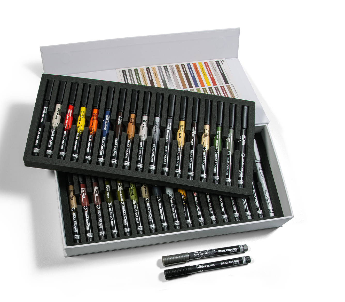 Deluxe case with the complete range of RC Markers. This case contains all 34 colours in two foam trays inside an elegant white rigid box screen-printed and with magnetic closure system.