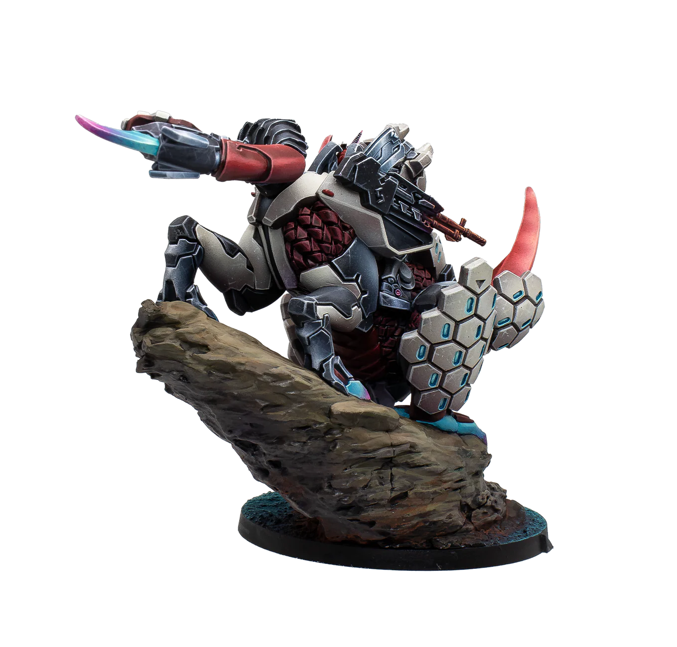 A rampage of frenzied roars and unbridled violence provide the power to sweep away anyone. Thus, Next Wave’s first armoured cavalry unit was created, a perfect example of the potential that can be achieved through collaboration with other Hegemonic species, in this case victory achieved with blood-stained teeth and claws.