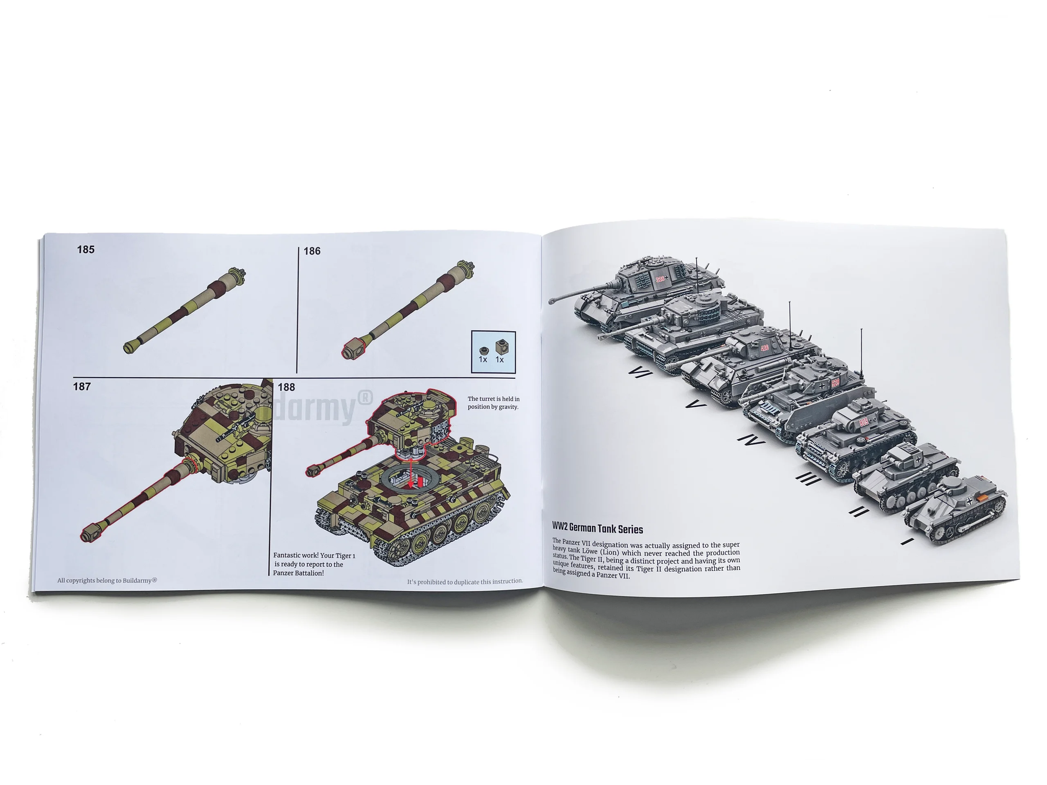 With 1153 bricks, this kit captures all the iconic features of the Tiger 1, from the distinctive horseshoe curve of the turret to the robust, boxed chassis. Every angle of the model reflects the tank’s legendary design, making it instantly recognisable.